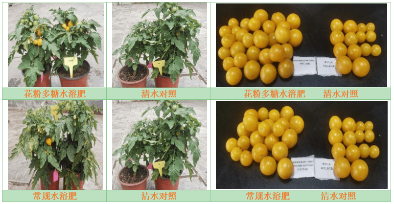 (2)在設施大棚中,采用花粉多糖制劑產(chǎn)品灌根大棚番茄,7.5kg/公頃可顯著提升番茄風味,提高Vc含量20.3%,增加采摘率4.9%。