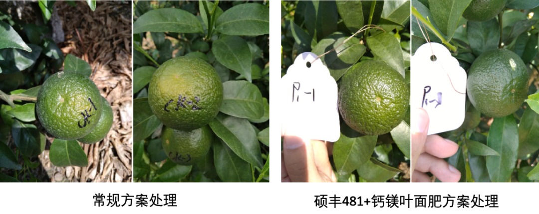 在雜柑的幼果膨大期使用天然蕓苔素+鈣鎂葉面肥能夠促進(jìn)樹體補充鈣元素,果面光靚,減少裂果產(chǎn)生,預(yù)防日灼果。小編推薦:雜柑幼果膨大期,使用天然蕓苔素碩豐481?2000倍+多迎鈣鎂1000倍噴霧。與常規(guī)方案處理相比,此方案處理,果實直徑大、果面光亮,日灼果發(fā)生概率降低30%。